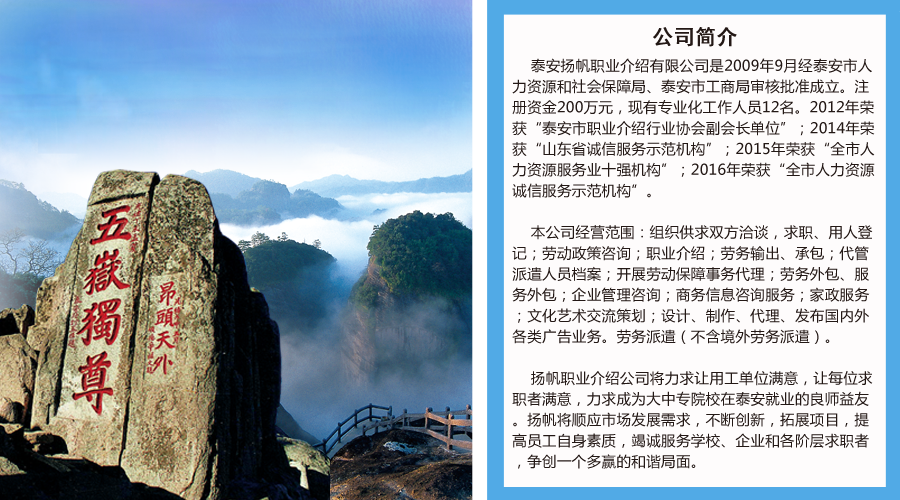 【招聘公告】泰安揚帆職業介紹有限公司某國有企業招聘簡章 [2025-07-12]